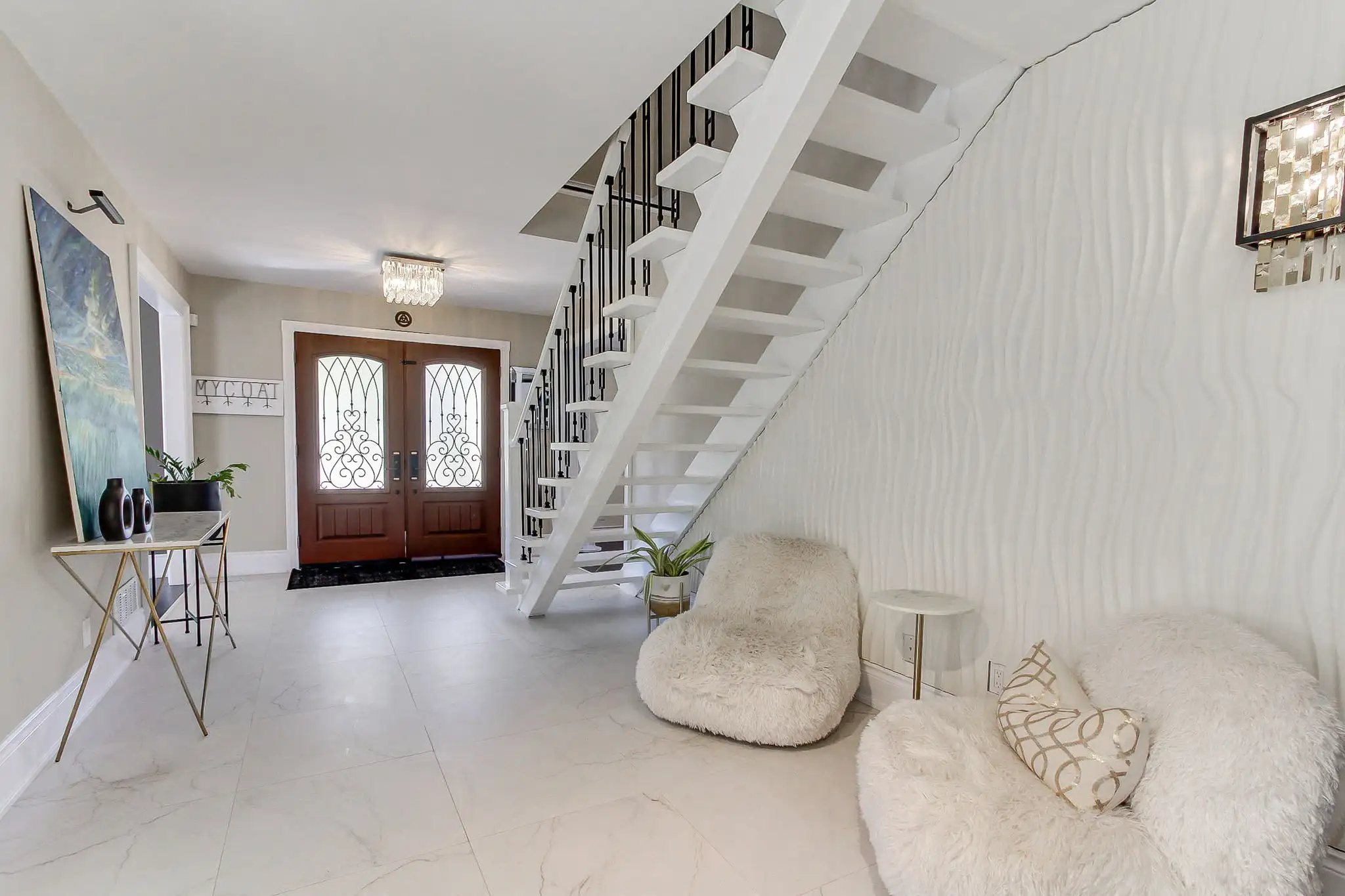 Practical upgrades include a redesigned mudroom with Spanish terracotta tile, shiplap accents, abundant storage, and a side entrance, as well as a main-floor laundry with built-in cabinetry, quartz counters, and new appliances.